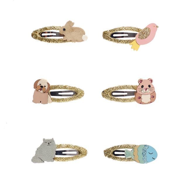 様々な動物のモチーフがついたヘアクリップ(パッチン留めタイプ)6個のギフトセット。