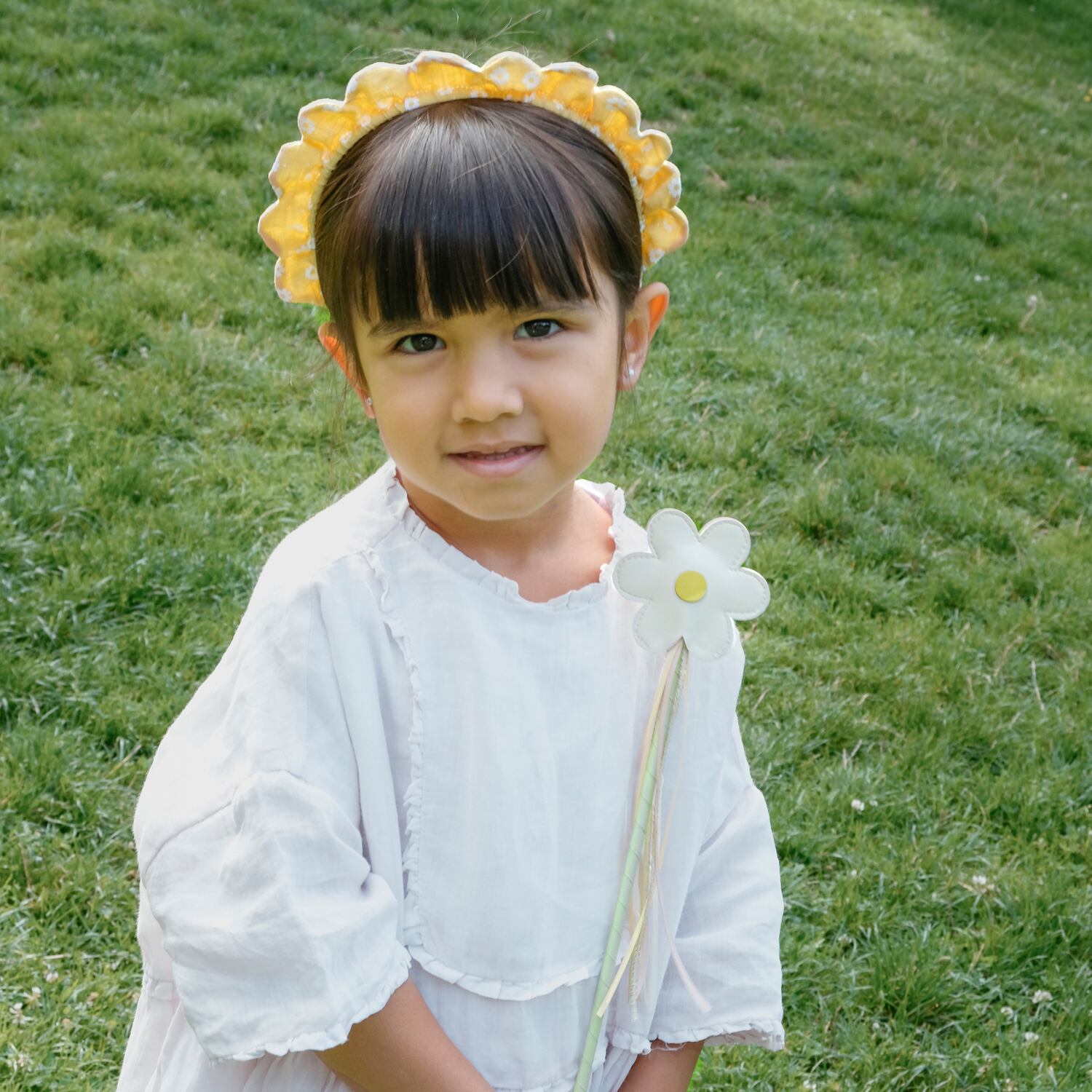 デイジー柄が可愛らしい、スカラップデザインのカチューシャ。 まるでデイジーの花冠のようなデザインで、夏のお出かけスタイルにやさしく華やかなアクセントをプラスします。 小さなお子さまの頭にもやさしくフィットするようデザインされており、快適なつけ心地でデイリー使いにもおすすめのアイテムです。