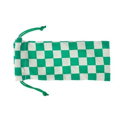 グリーンのチェック柄フレームと、ストライプ柄のテンプルを組み合わせた、コントラストがおしゃれなサングラス。 小さな目を紫外線から守るデザインで、UVカット仕様なのも安心ポイントです。 持ち運びに便利なコットン素材の保護ケース付きで、毎日のお出かけに活躍します。